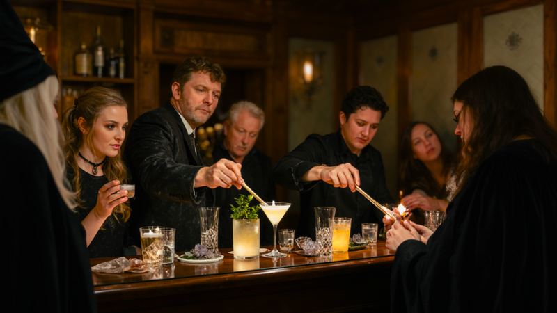 Bij aankomst geniet je een welkomstcocktail, waarna je in tovenaars mantel (momenteel worden er geen mantels gedragen totdat er een andere soort mantels geleverd worden) en met toverstok aan de slag gaat in een sfeervol decor dat je meevoert naar een andere dimensie. Deze fantasierijke beleving duurt ongeveer 2 uur en is perfect voor vrienden, stellen, vrijgezellenfeestjes of teambuilding-uitjes. Je werkt met kwaliteitsdranken en verse ingrediënten, ook alcoholvrije opties zijn beschikbaar op aanvraag.