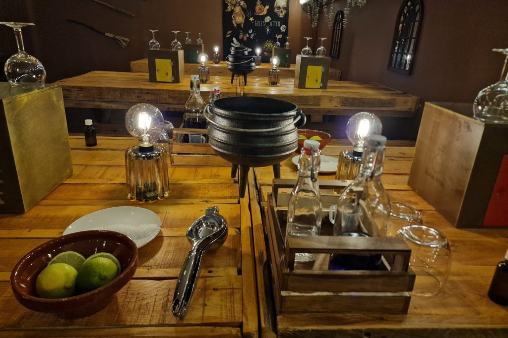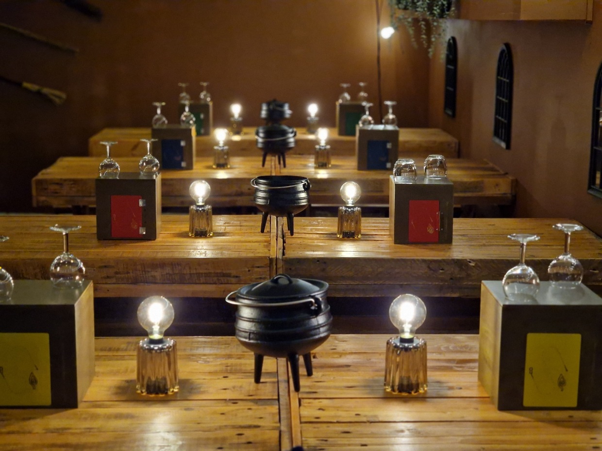 Onze inrichting ademt mystiek en charme, met details die elke hoek van de ruimte laten sprankelen. De muren vertellen het verhaal van magische drankjes, en de sfeer belooft avontuur. Neem plaats tijdens onze betoverende cocktail workshop, waar elke cocktail met liefde en precisie wordt gecreërd, en laat je meevoeren op een reis door de rijke wereld van magie.